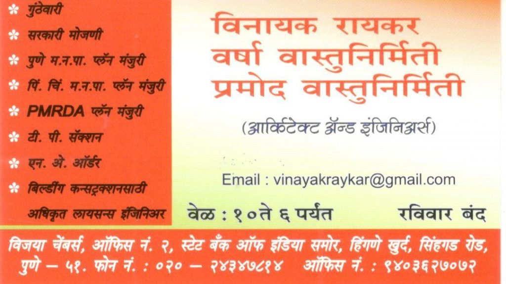 Address – Office No. 2, Vijaya Chamber, Hingne Khurd, Sinhgad road, In front of State bank,  Pune- 411 051